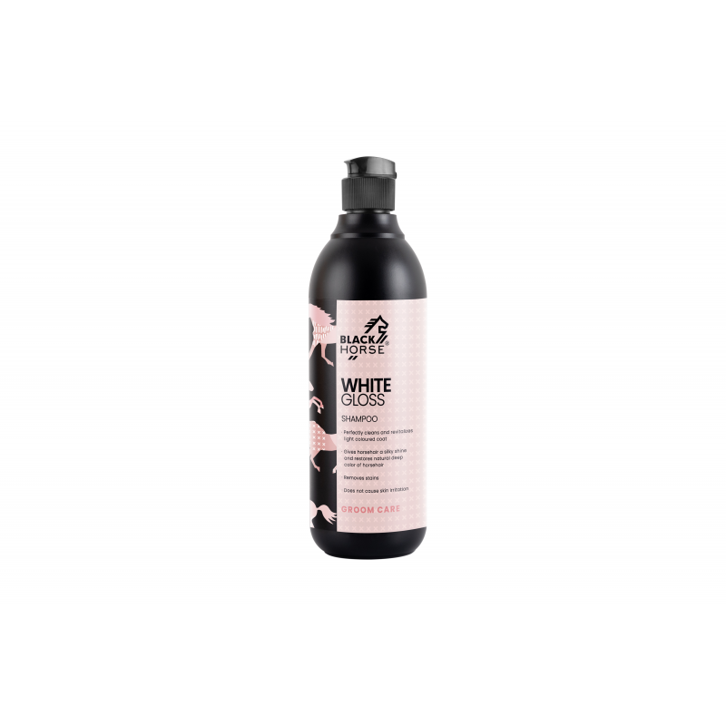 Szampon WHITE GLOSS przeznaczony jest do codziennego użytku dla koni o jasnej maści. Kompozycja precyzyjnie dobranych substancji aktywnych sprawiała, że preparat delikatnie ale skutecznie usuwa zanieczyszczenia, przywracając równocześnie równowagę hydrolipidową naskórka i włosia. Dzięki zawartości ekstraktu z rumianku oraz ekstraktu z  cytryny szampon doskonale sprawdza się w pielęgnacji jasnej sierści. Przywraca naturalny kolor sierści oraz nadaje jej piękny połysk. Szampon Black Horse nie zawiera drażniących substancji zapachowych i nie podrażnia gruczołów skórnych.