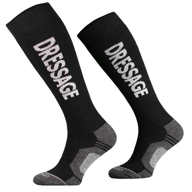 COMODO Skarpety z wełny Merynosa czarne z białym napisem DRESSAGE