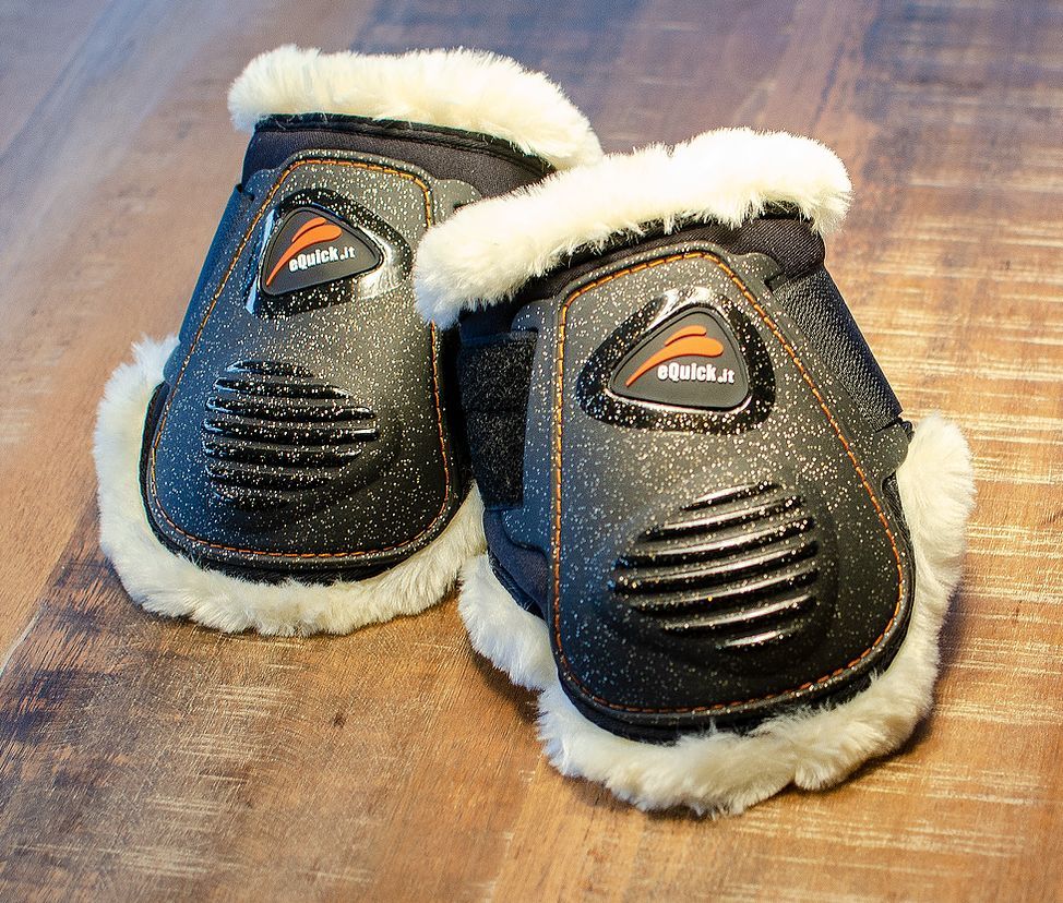 Ochraniacze eQuick eLight Fluffy to połączenie klasycznych modeli ochraniaczy skokowych z nowoczesnością charakterystyczną dla włoskiej firmy oraz kropelką luksusu w postaci mięciutkiego futerka.