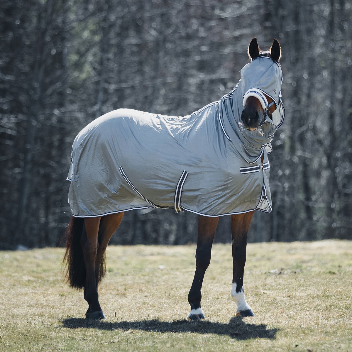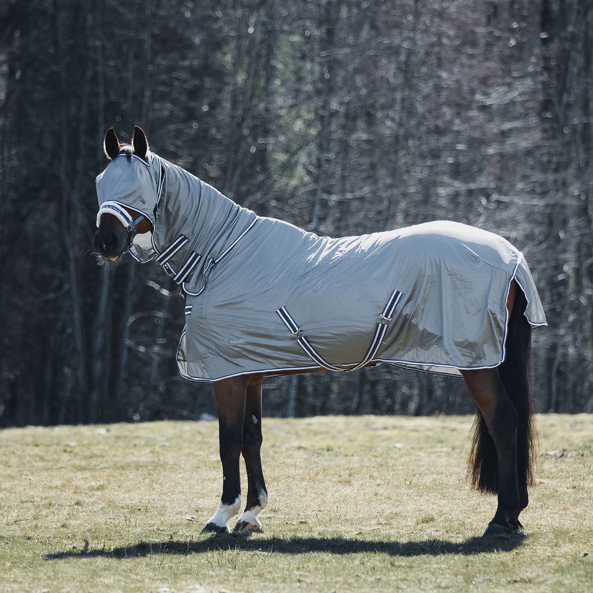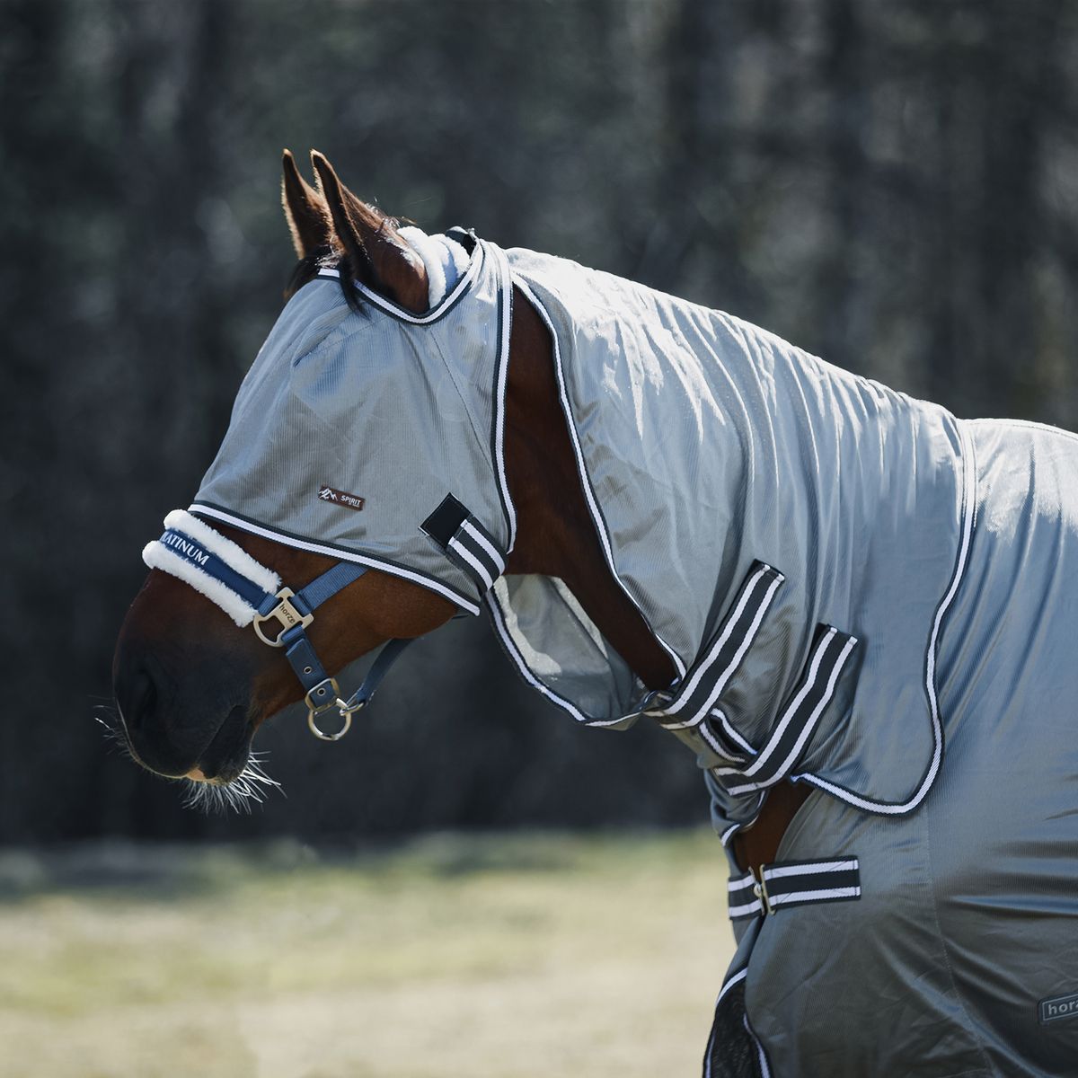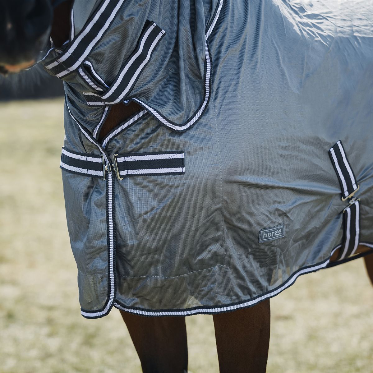 Całość wykonana z wysokiej jakości siatkowanej, oddychajacej tkaniny. Idealana dla wrażliwych koni.