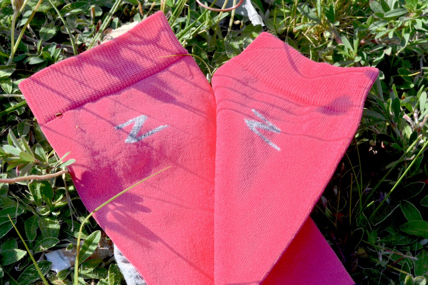Miękkie, rozciągliwe skarpety z mieszaniny nylonu i bawełny w kolorze malinowym.