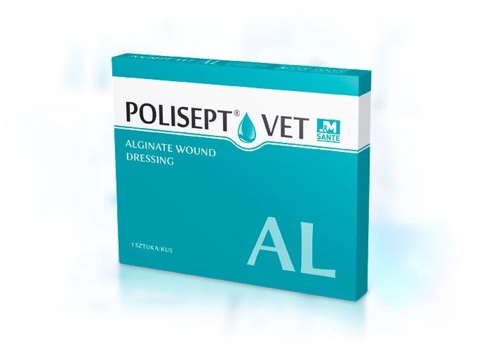 Polisept® Vet AL – Alginate Wound Dressing jest sterylnym, chłonnym opatrunkiem bezpośrednim, w postaci płaskich płytek (typu plaster), zawierającym alginian wapnia.