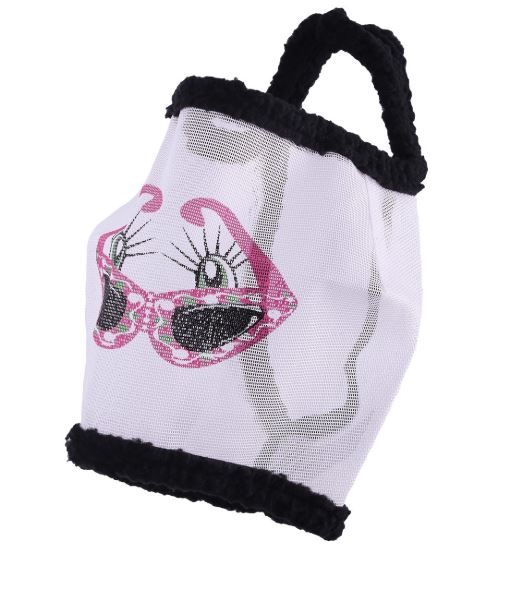 Uszyta ze sztywnej siateczki, dzięki czemu nie będzie podrażniać oczu, zapinana na rzep i wykończona miękkim futerkiem, które zapobiega obtarciom