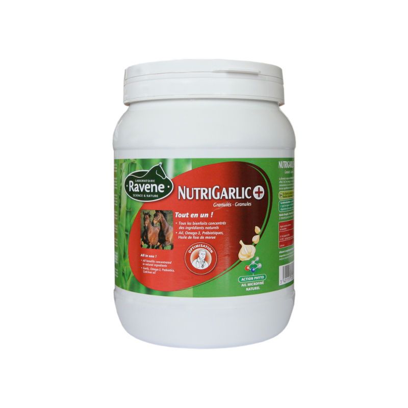 Suplement Ravene NutriGarlic+to unikatowa formuła, która łączy w sobie dobroczynne właściwości z wszystkich naturalnych składników stosowanych najczęściej w celu poprawienia kondycji, stanu ogólnego i odporności konia.