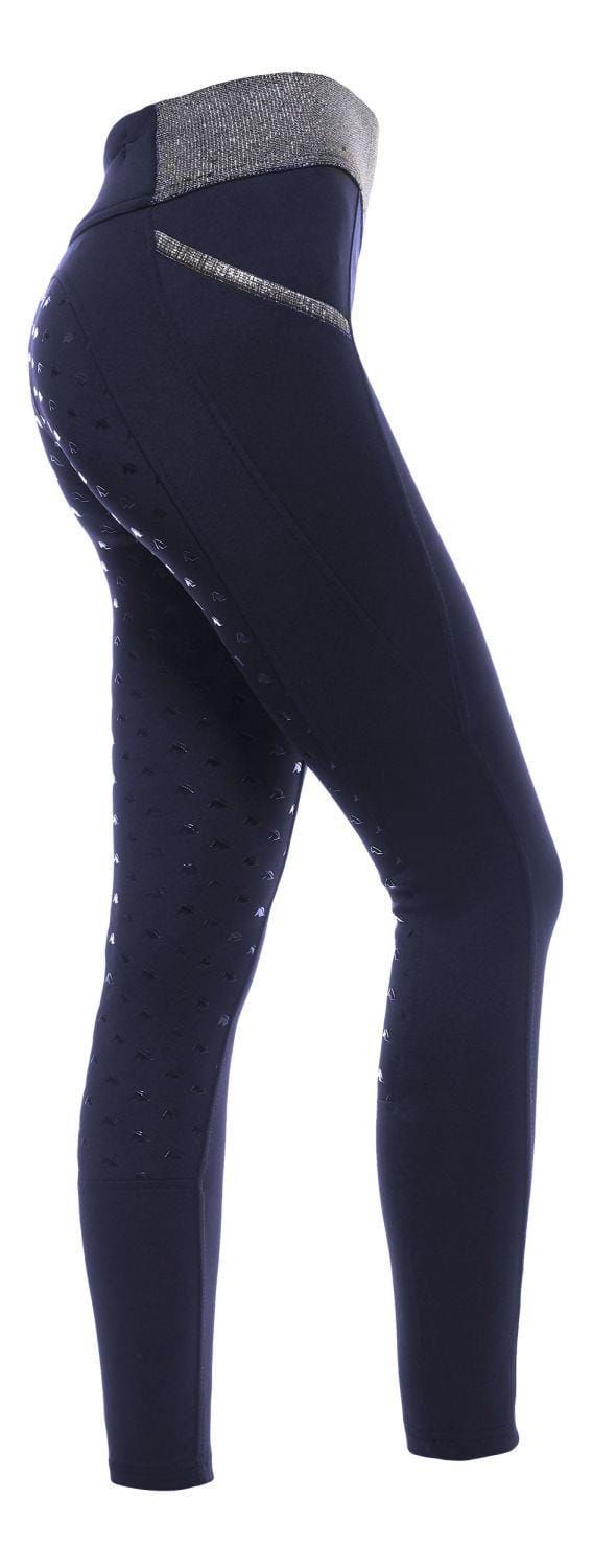 Bryczesy posiadają pełny silikonowy lej w uroczy wzór końskich głow, który gwarantuje lepszą przyczepność do siodła oraz dużą elastyczność i idealne dopasowanie bryczesów.
