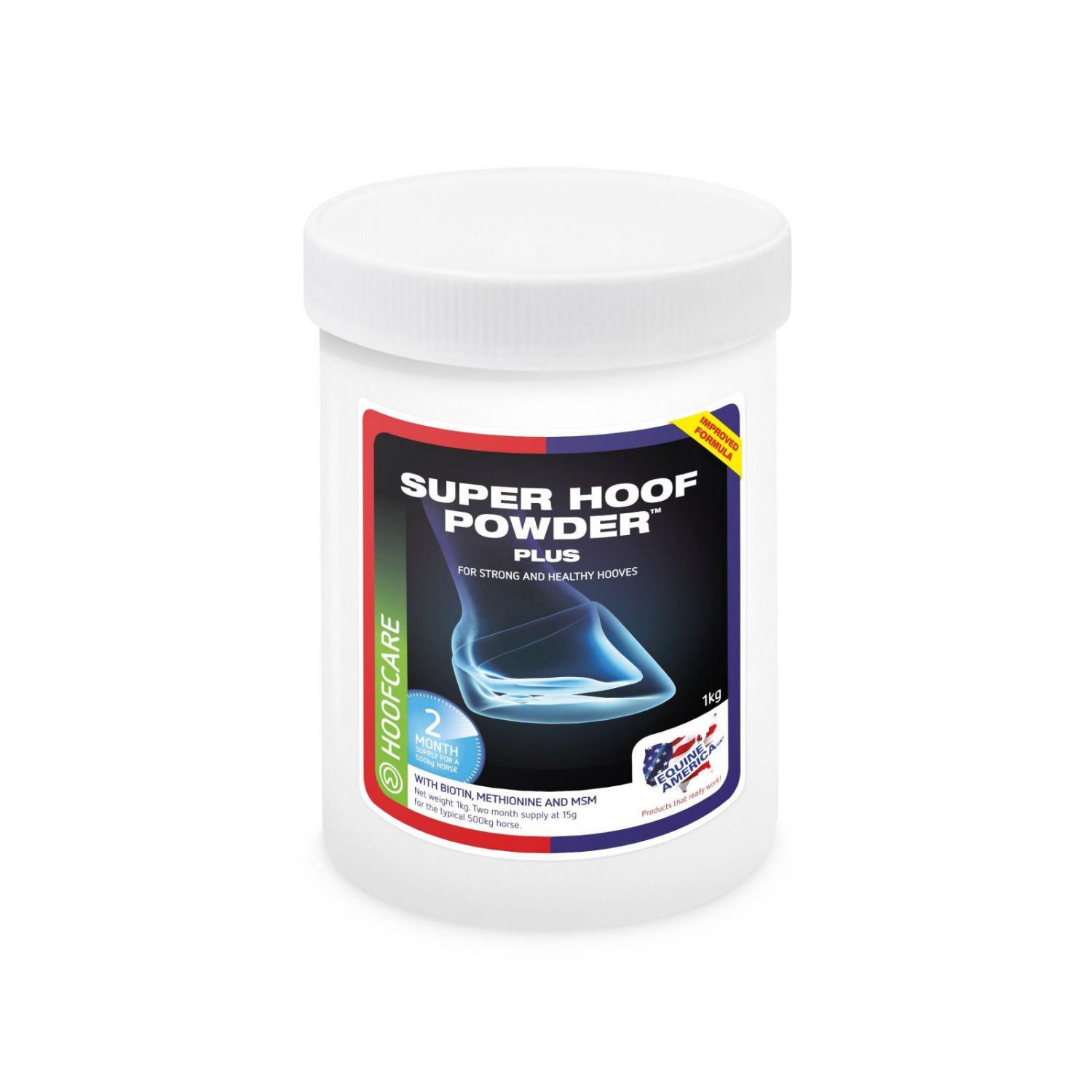 Super Hoof Powder Plus to unikalny suplement stworzony na bazie składników, o udowodnionej skuteczności, które wspierają odbudowę osłabionego rogu kopytowego oraz zapobiegają jego pękaniu.