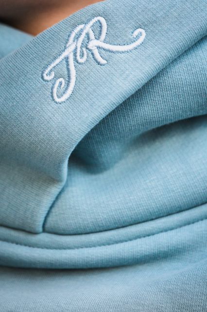 - Komin wykończony eleganckim monogramem TR – koniecznie zwróć uwagę na to jak efektownie wygląda bluza nawet jak masz na sobie kamizelkę. No i od razu widać z jaką filozofią się utożsamiasz