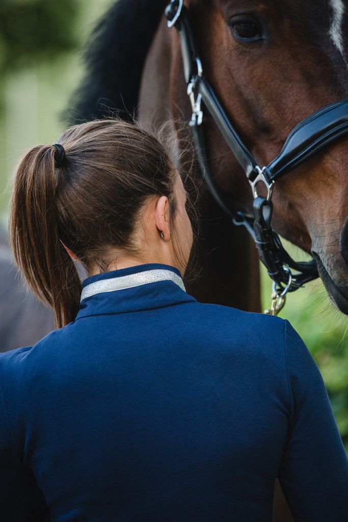 – Minimalistyczny design z odrobiną brokatu – taśma brokatowa na kołnierzyku lub stójce dodaje odrobiny błysku w bluzie i tworzy spójną kolekcję z legginsamit-shirtami i czaprakami Sparkle.