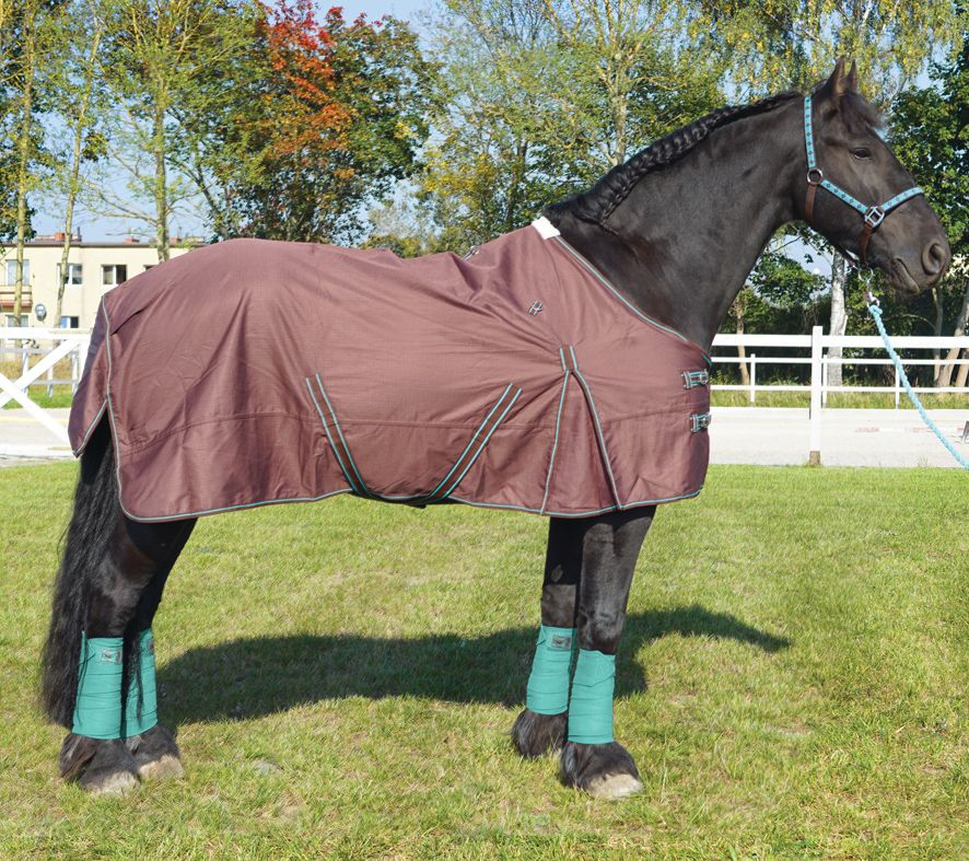 Posiada klapę na ogon, praktyczne rozcięcia w okolicy łopatek, które poprawiają komfort noszenia, podszycie ze sztucznego futerka przy kłębie, które chroni przed obtarciami