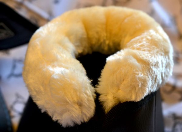 Górna krawędź wykończona puchatym, syntetycznym futerkiem.