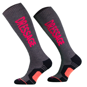 • COMODO Skarpety z wełny Merynosa szare z różowym napisem DRESSAGE