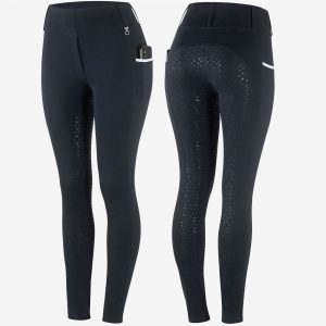 HORZE Damskie legginsy jeździeckie Lucinda z pełnym lejem silikonowym CZARNE rozm 34, 36